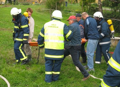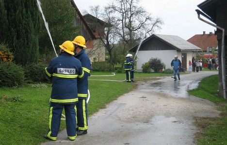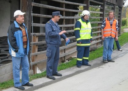 Društvena taktična vaja PGD Lokarje - 2007 V soboto 13.10.2007 je bila v okviru meseca požarne varnosti izvedena društvena taktična vaja PGD Lokarje. Vaja je potekala v kraju Brezje ob Slomu na gospodarskem poslopju Albine Slomšek. Vas Brezje ob Slomu se nahaja na vzhodnem delu požarnega okoliša PGD Lokarje in spada že v KS Grobelno. Sicer pa gre za dokaj strnjeno naselje, v katerem živijo tako delavske kot tudi kmečke družine z manjšimi kmetijami. Dostop gasilske enote do vasi je mogoč po cesti od krožišča Dole proti Ponikvi, kjer se na vrhu klanca pred naseljem Hotunje nahaja odcep desno za Brezje ob Slomu. Vas je opremljena z javnim vodovodom, na katerem se nahajajo trije podzemni hidranti. S pomočjo PGD Lokarje so krajani že pred časom ustrezno opremili dve hidrantni omarici. Scenarij vaje je pripravil tov. Albin Drač, ngč. Požar je nastal na gospodarskem poslopju zaradi kratkega stika na motorju mlekovoda. S pomočjo opreme iz hidrantnih omaric so gašenje pričeli krajani sami, hkrati pa je bilo preko RCO - 112 alarmirano tudi PGD Lokarje. Krajani so iz bližnjega hidranta izvedli dva napada. Prvega neposredno na gospodarsko poslopje in drugega na severni del poslopja, kjer je bilo poleg gašenja potrebno tudi varovanje sosednjega stanovanjskega objekta. PGD Lokarje je v vaji sodelovalo z GVC-16/25 in GV-1 ter pripadajočima posadkama. Po prihodu na mesto intervencije je poveljujoči odredil notranji napad za pregled notranjosti objekta, zunanji napad na zahodni strani in zamenjavo krajanov pri obstoječih napadih z ustrezno zaščitenimi gaslici. Gasilci za izvedbo notranjega napada so se opremili z izolirnimi dihalnimi aparati za pregled notranjosti objekta, pri čemer so našli poškodovano osebo, jo prenesli iz poslopja in ji nudili prvo pomoč.