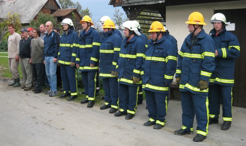 Zbor gasilcev in sodelujočih krajanov ob koncu vaje